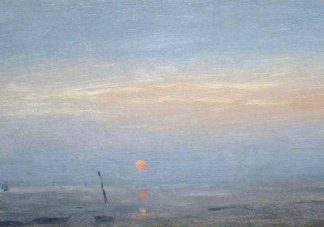 Soleil couchant (Normandie) Adolphe Félix Cals VENDU Adolphe Félix CALS (Paris, 1810 – Honfleur, 1880) « Soleil couchant (Normandie) » - huile sur papier marouflé sur toile - 18 x 34 cm - signé et daté en bas à droite « Cals/1872 » - Au revers du châssis la mention « Coll. Hazard » et…
