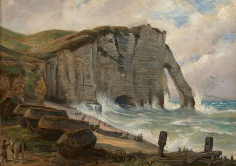 Vue des falaises d'Etretat par gros temps François-Gabriel Lepaulle VENDU François-Gabriel LEPAULLE (Versailles, 1804 – Ay, 1886) « Vue des falaises d'Etretat par gros temps » - Huile sur papier marouflé sur toile Daté et signé « 1856 G Lepaulle » en bas à droite - 29,50 x 38,50 cm. -