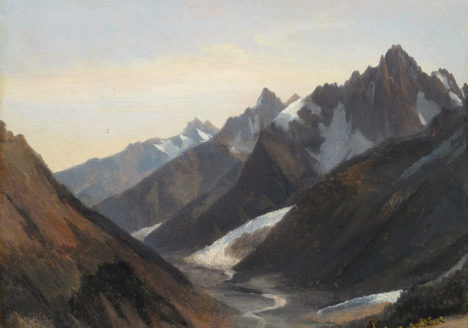 Vue de la vallée de Chamonix Auguste Xavier Leprince VENDU AU MUSEE NATIONAL DE STOCKHOLM Auguste Xavier LEPRINCE (Paris, 1799 – Nice, 1826) « Vue de la vallée de Chamonix » - Huile sur papier marouflé sur toile - 22 x 28 cm Au dos, sur le châssis, l’annotation à l’encre « Vallée de Chamonix… -