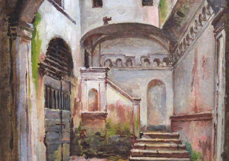 Vue d’une cour Italienne François Marius Granet VENDU François Marius GRANET (Aix-en-Provence, 1775 – Aix-en-Provence, 1849) « Vue d’une cour Italienne » - Huile sur papier marouflé sur toile - 27,1 x 21 cm - Vers 1820 Oeuvre en rapport : « intérieur de monastère animé » - aquarelle sur papier - 10,5 x 15,5… -
