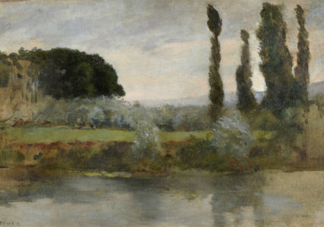 Paysage Fluvial Henri Gervex VENDU Henri GERVEX (Paris, 1852 – Paris, 1929) « Paysage fluvial » - Huile sur toile - signée 'H Gervex' en bas à gauche - Toile de la maison Hardy Alan Carpentier - 32 cm x 45 cm -