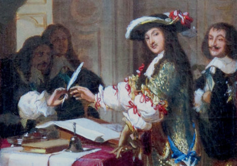 Etude pour Louis XIV signant les ordonnances constitutives de la marine Alexandre-Jean-Baptiste HESSE VENDU AU MUSEE FABRE « Etude pour Louis XIV signant les ordonnances constitutives de la marine » Huile sur toile - signée « ALEXANDRE HESSE » en haut à droite - Cachet de la maison Haro sur le châssis au verso -… -