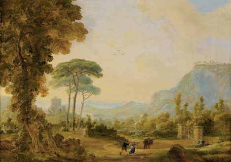 Le temple d'Esculape dans les jardins Borghèse à Rome Jean-Charles-Joseph Remond VENDU Jean-Charles-Joseph REMOND (Paris, 1795 - Paris, 1875) « Le temple d'Esculape dans les jardins Borghèse à Rome » – Huile sur papier marouflé sur toile – 21,5 cm x 29,8 cm Signée, localisée « Rome » et datée 1823 en bas à droite -