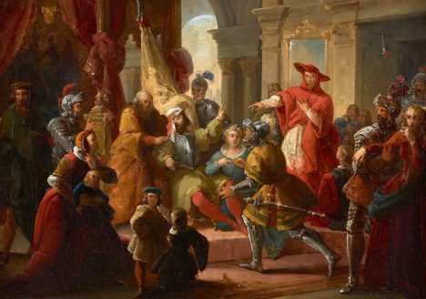 Francesco PODESTI – Henri II blessé mortellement bénit le mariage de sa sœur Marguerite de Valois avec Emmanuel-Philibert de Savoie