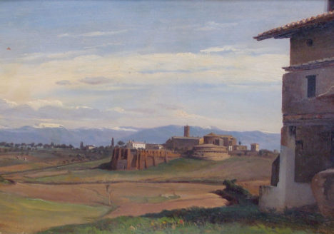 Environs de Rome Jules Coignet VENDU Jules COIGNET (Paris, 1798 – Paris, 1860) « Environs de Rome » - Huile sur papier Marouflé sur toile – 25 cm x 42,5 cm - situé et daté en bas à gauche « Rome/1841 » -