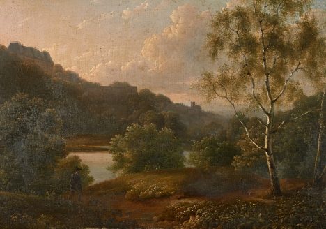 "Chasseur au pied du château de Meudon" Jean-Joseph-Xavier Bidauld VENDU AU MUSÉE DE MEUDON (Par l’intermédiaire d’ARTCURIAL) Jean-Joseph-Xavier BIDAULD « Chasseur au pied du château de Meudon » – Huile sur panneau, entoilé au verso – 24 cm x 36 cm -